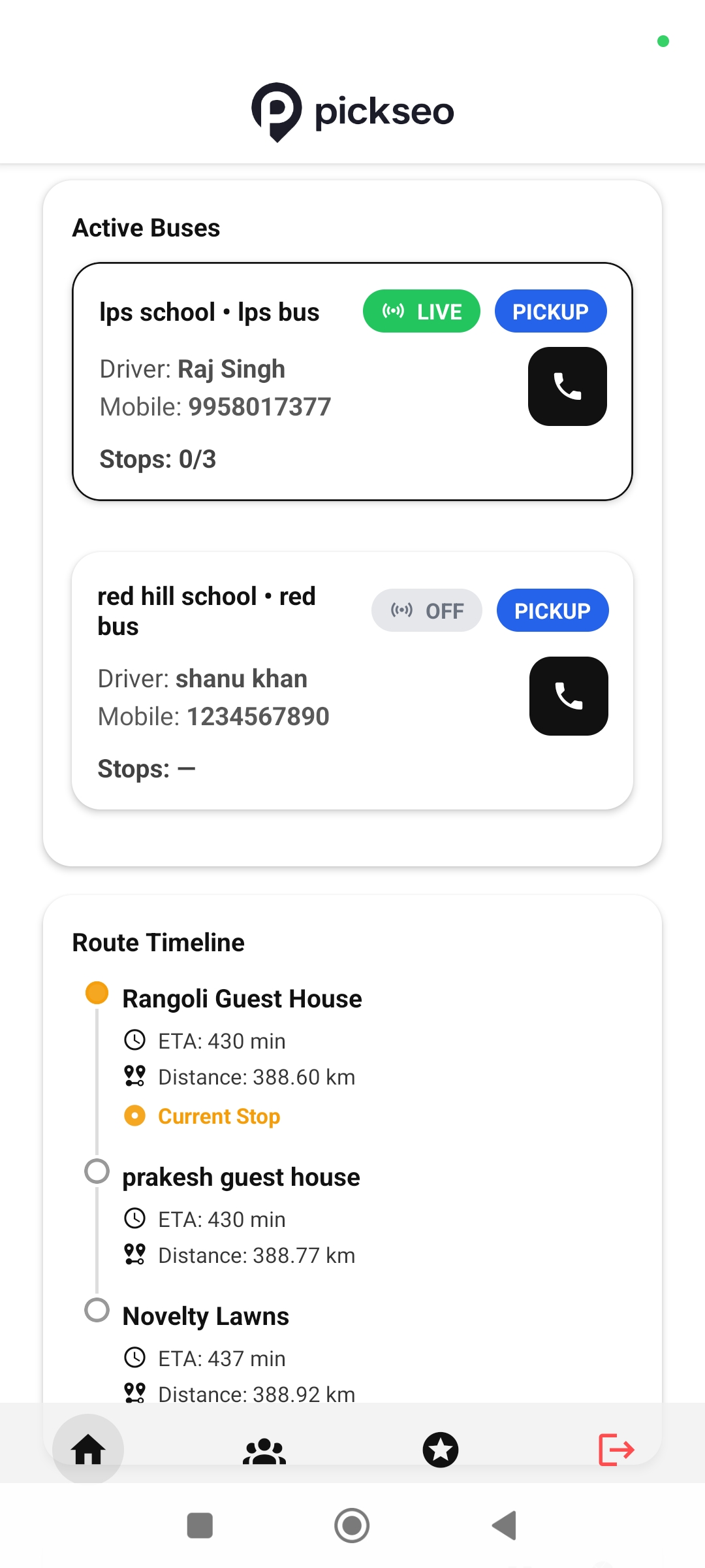 Centralized management of students, pickup points, attendance logs and parent connectivity.