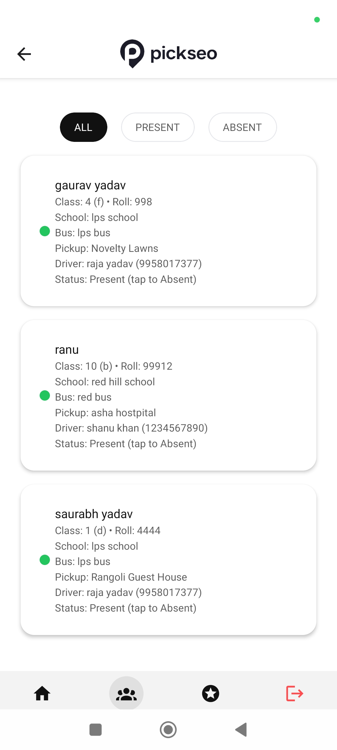 Centralized management of students, pickup points, attendance logs and parent connectivity.